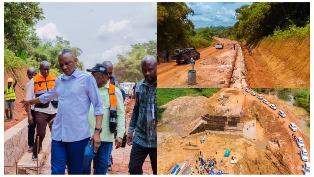 Au cours de sa tournée, le Ministre a passé en revue plusieurs sites, évaluant l’avancement des chantiers. Parmi les points d’inspection figuraient notamment la construction d’un dalot-cadre et d’un canal d’évacuation au PK 17+67, la reconstruction du Pont Kangenge, la reprise des travaux au niveau du Pont Batchebo au PK 19 et la stabilisation de la chaussée au PK 32. Il a également visité l’usine de concassage au PK 33, un maillon essentiel pour la production de granulats nécessaires aux chantiers.