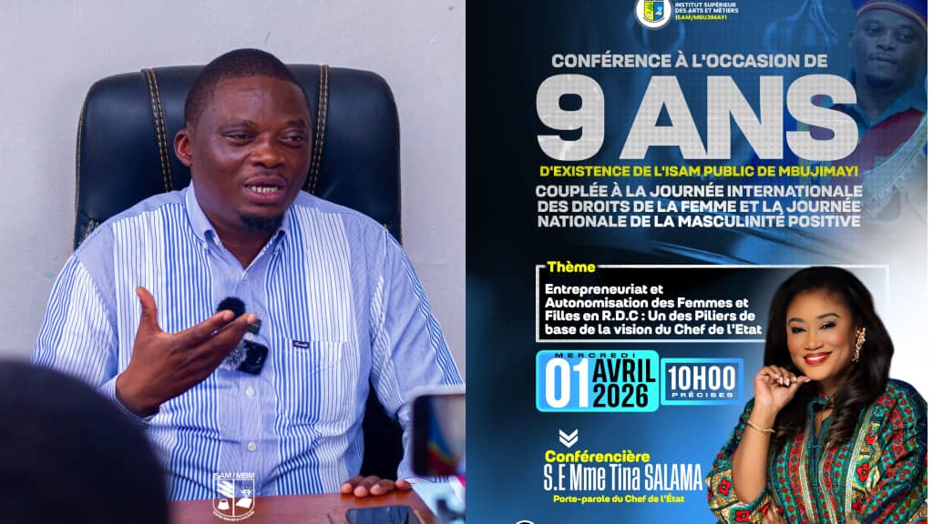 L’annonce a été faite ce mardi 24 mars 2026 par le Directeur général de l’ISAM Mbujimayi lors d’un point de presse organisé dans la ville diamantifère. Cette activité scientifique et académique sera animée par Tina Salama, Porte-parole du Président de la République, autour du thème : « L’entrepreneuriat et l’autonomisation des femmes et des filles en RDC : l’un des piliers de base de la vision du Chef de l’État ».