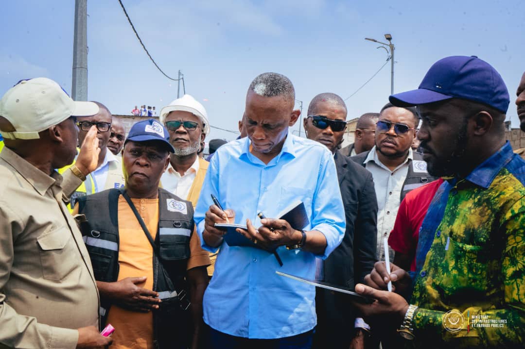 À Ngaliema la visite a commencé sur l’avenue Comorico, une voie de 643 mètres en pleine construction. Le ministre a également visité le pont Makelele, où il a ordonné à l’OVD d’accélérer les travaux de curage et de dragage pour prévenir les inondations.